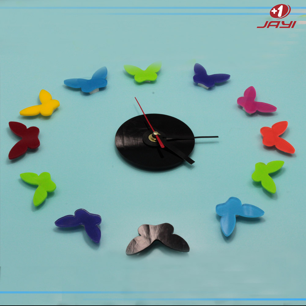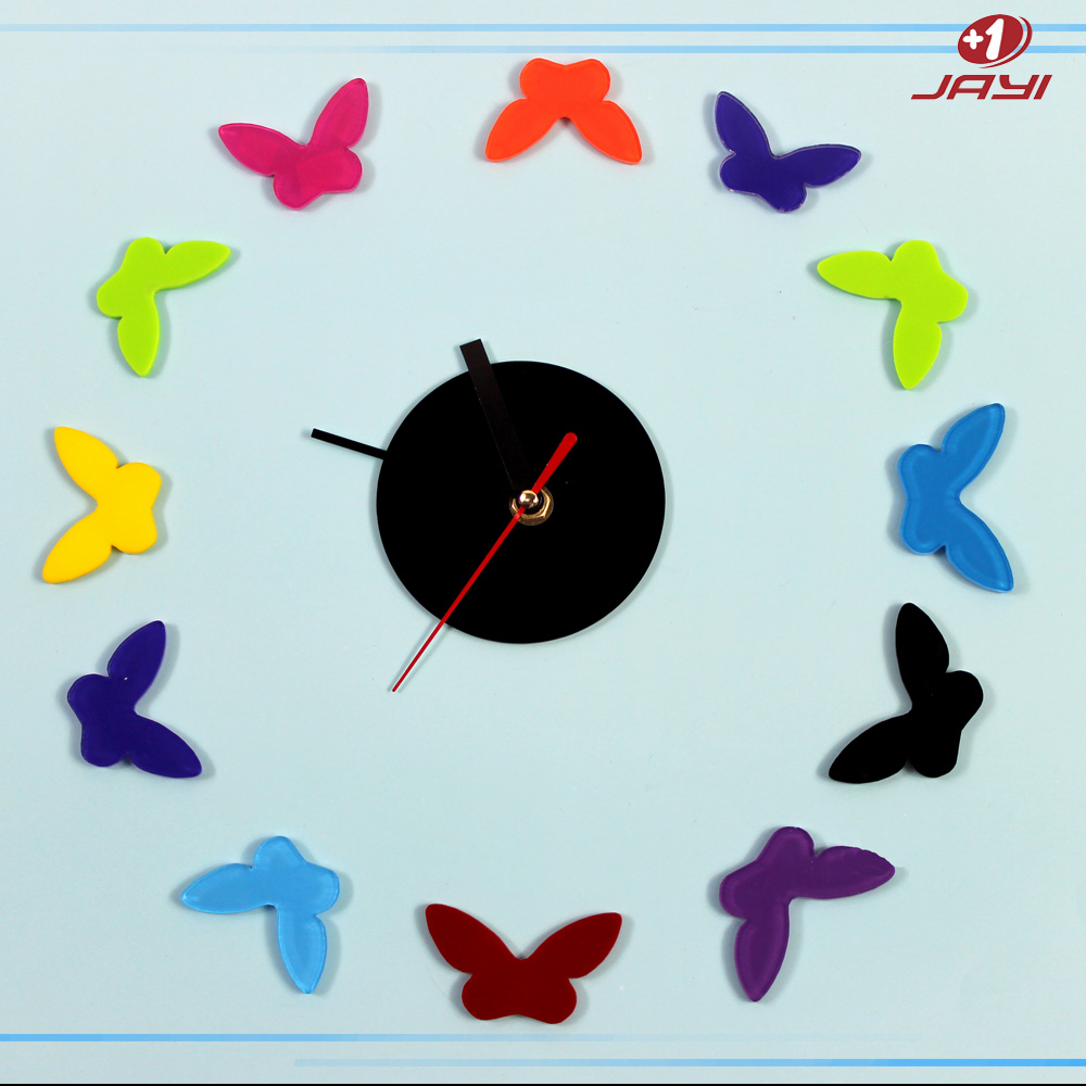 Multicolor butterfly DIY organic glass clock